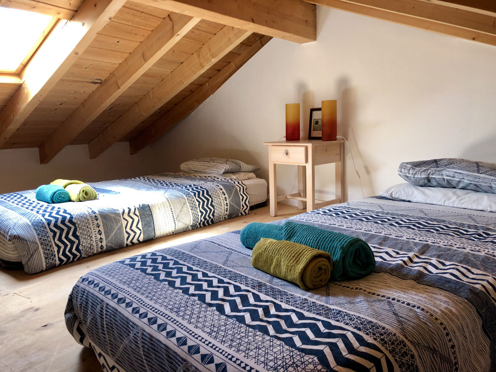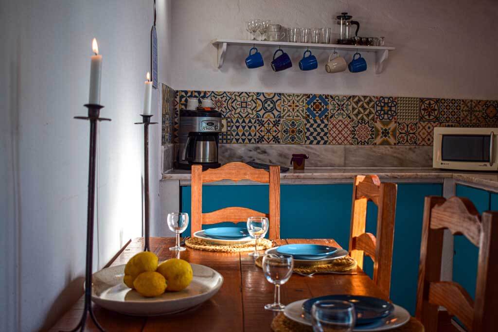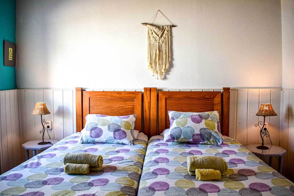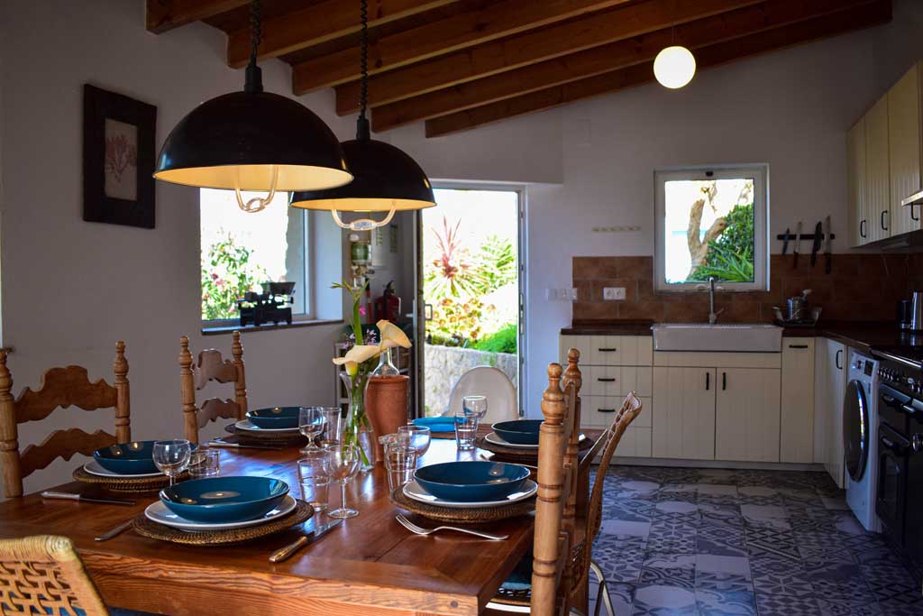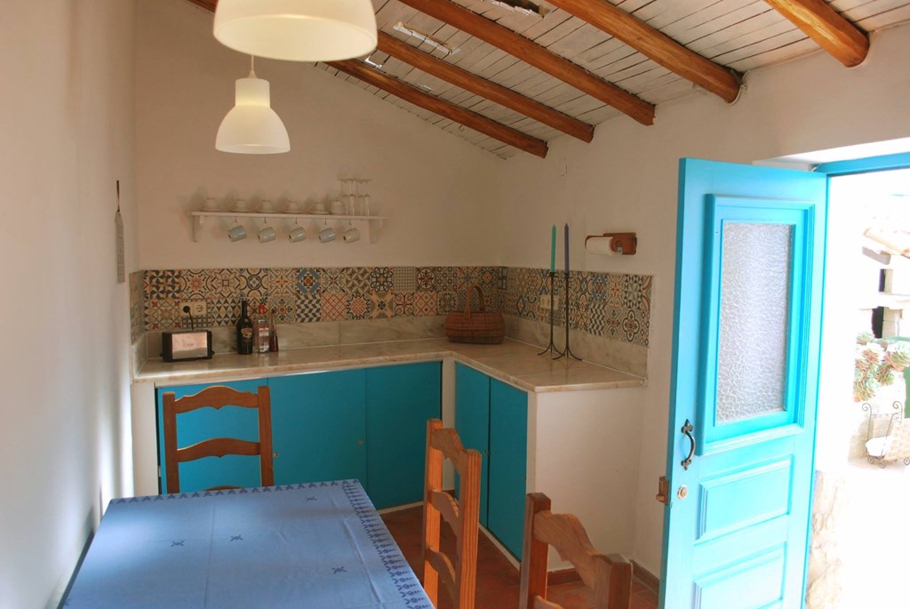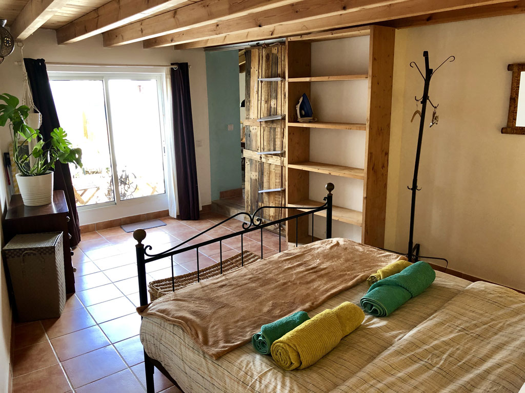 This is a two bedroom cottage and can sleep 5. The master bedroom is spacious and light with a comfortable double bed. The second bedroom with it’s blue shutters and blue wall gives you a South-European feeling. In the living room is a single sofa bed for a possible 5th guest. It has a traditional Portuguese kitchen with all you need to prepare some home-made meals during your stay, including a washing machine and oven. A private terrace with plenty of space to eat outside with the family and an outside sink. The house is an old farm but beautifully restored. You can see its characteristics in the wide walls and old grain mill in the kitchen. The living room is fitted with a log burner which keeps the house nice and warm especially for off-season guests.