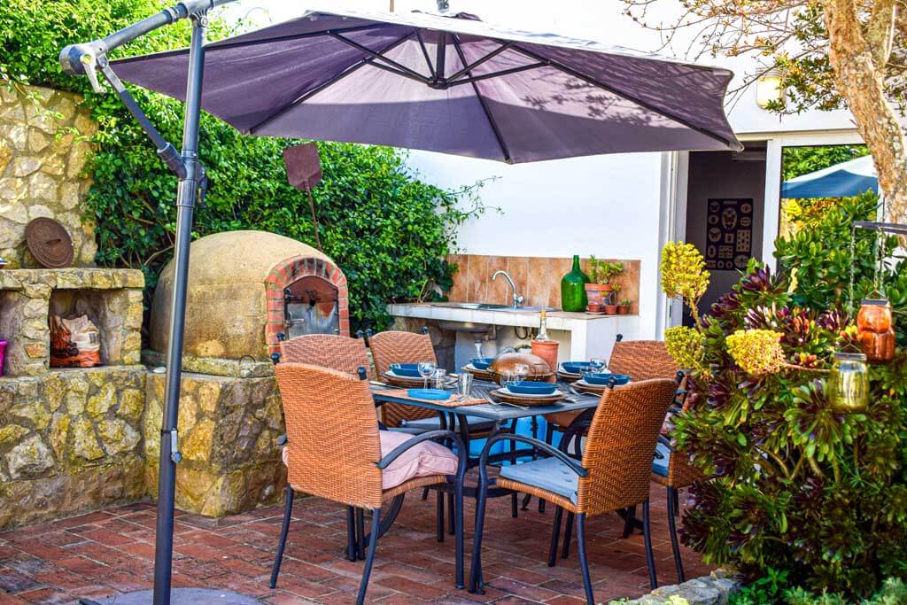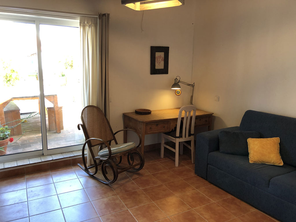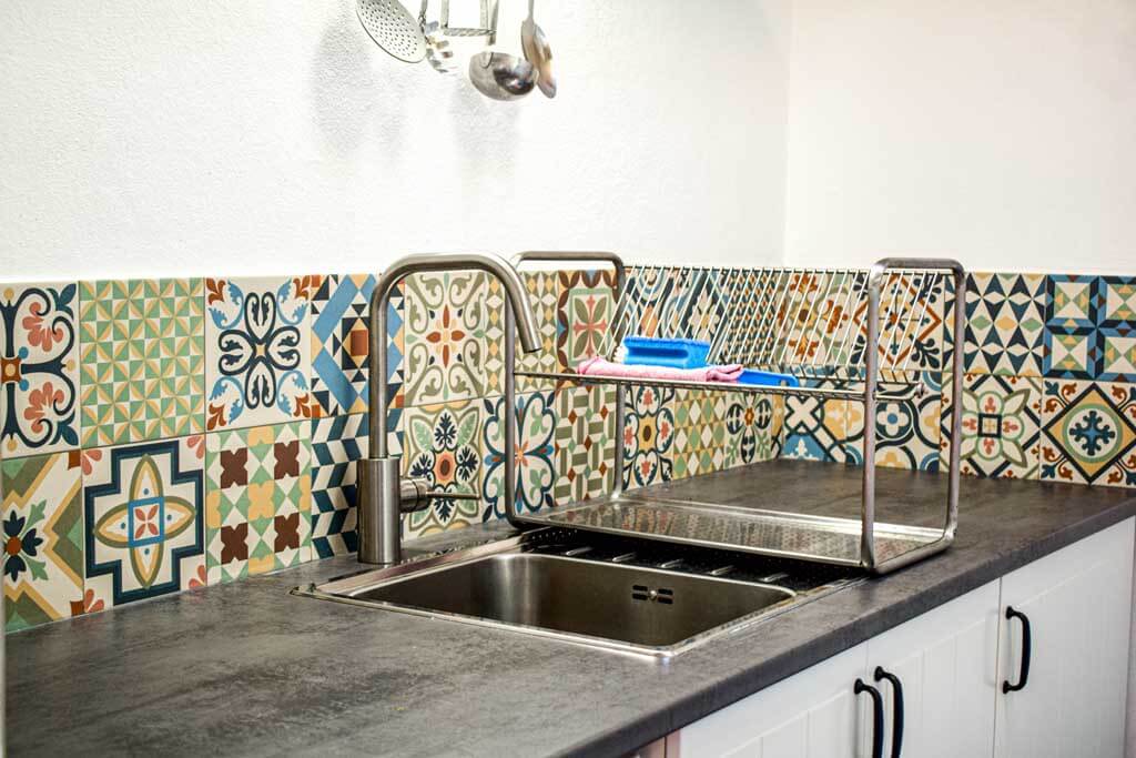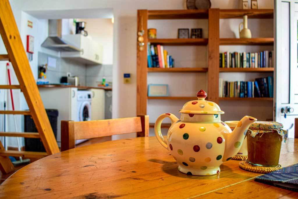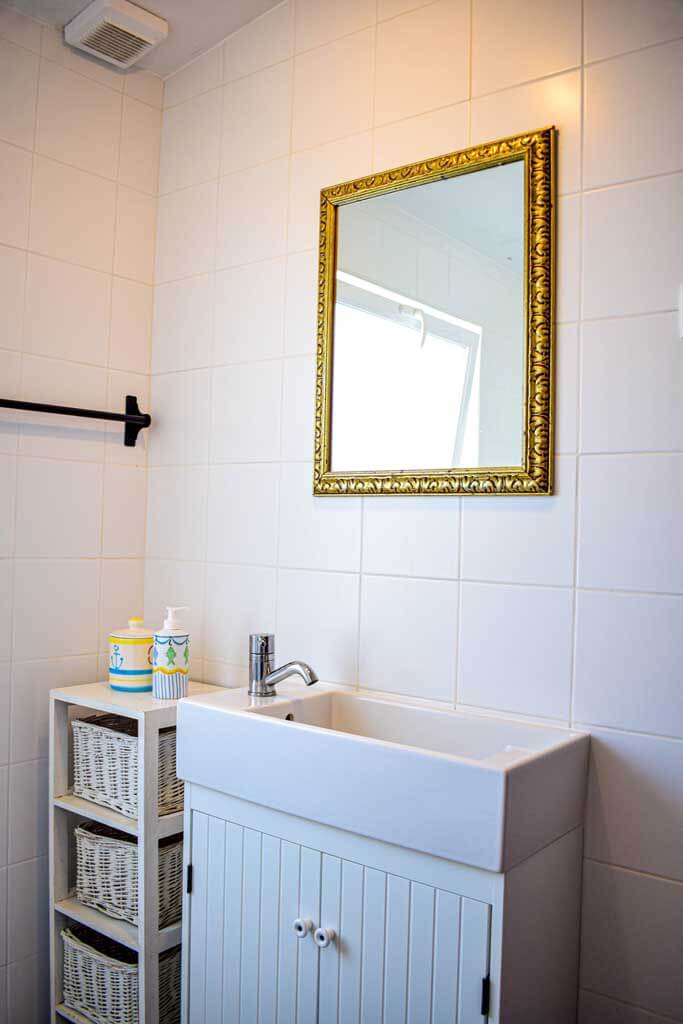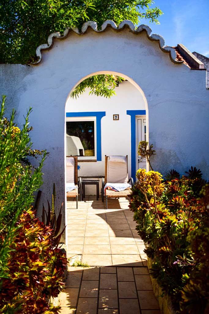 Originally a donkey stables, now a lovely holiday home. Entering the house into the large, spacious open kitchen. With authentic Portuguese tiles and a 5 hob, grill and oven cooker. This is the perfect house for people who love to cook. The bathroom is large with 2 sinks and a big shower. There is one good size bedroom with a double bed. Then there is a mezzanine bedroom with roof window which has two single beds. It is under the gable roof, high enough to kneel, sit and sleep. More suitable for kids. There is a sturdy ladder going up and a rail for protection. The living room is kitted out with a comfortable large 160×200 sofa-bed, suitable for two. There is a private terrace in the back and another terrace in the front with bbq and pizza oven area.