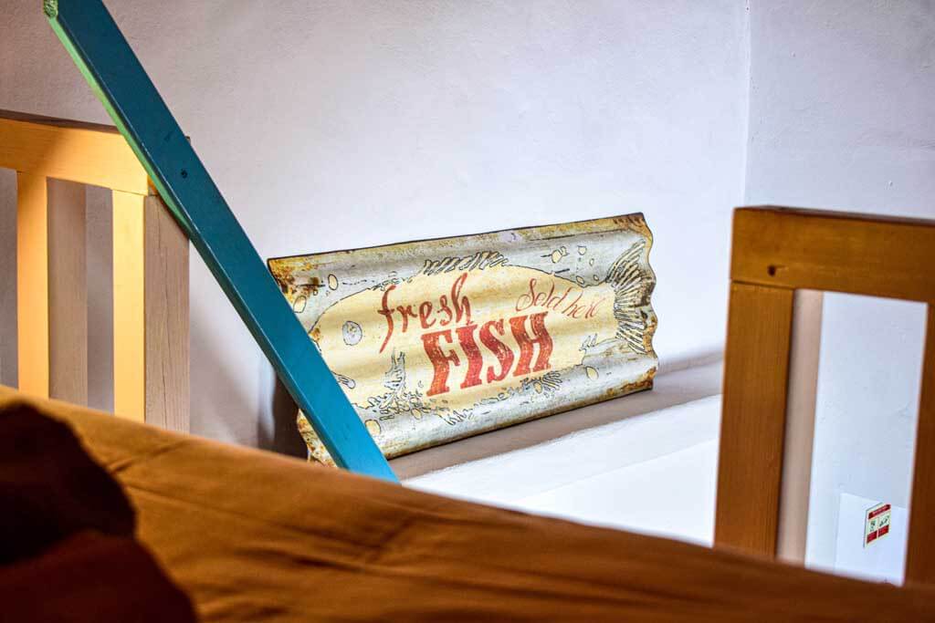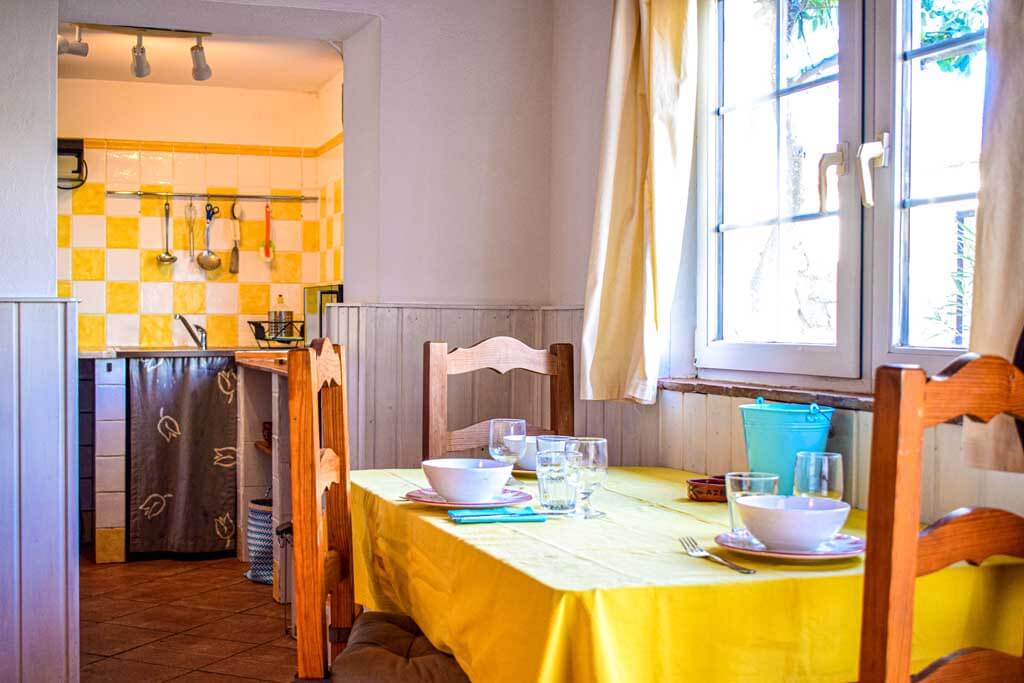 Our first house is located right next to the lemon tree and the fish tank. To enjoy your meals there is a lovely lawn with outside seating area. The house also has a roof terrace where you can enjoy the full sun. Linked to the house there is an outside shower where you can wash your sandy feet when you return from the beach. A cute and functional kitchen is available and the bathroom has a large shower and plenty of space. There are two comfortable single beds that can either be joined together or separated.
